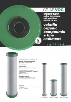 Die CB AF-Linie besteht aus mehreren Patronen, die unterschiedliche Probleme lösen können. CB AF CYST ist besonders geeignet für die Entfernung von Protozoen-Zysten wie Giardia und Cryptosporidium. CB AF Pb ist wirksam bei der Reduzierung von Blei und anderen Schwermetallen; CB AF CTO ist ideal zur Reduzierung von Chlor, Gerüchen und unangenehmen Geschmäckern. Die Patronen lassen sich optisch durch die charakteristische Farbe der Plättchen unterscheiden, die ihre spezifische Filrationsfunktion anzeigt. Sie sind mit verschiedenen nominellen Filtrationsgraden, (1, 5 und 10 Mikron, und in verschiedenen Höhen, (5", 7", 10" und 20"), in Standard- und BIG-Versionen erhältlich.